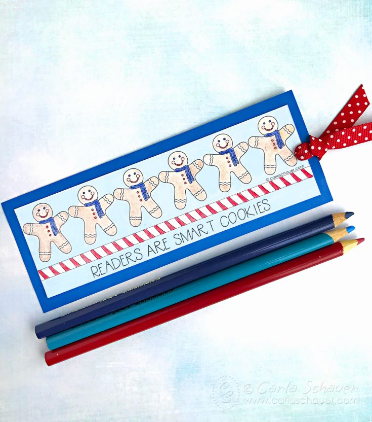 DIY Winter bookmarks make sweet non-candy treats or Holiday party crafts. These gingerbread men winter coloring bookmarks are easy for all ages to make and pair well with a book as a gift.